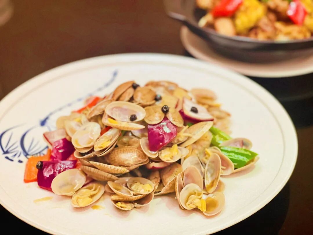 将花甲清理干净后,用麻辣爆炒,使每一颗都入味儿!太鲜了!随便夹起一颗,肉质都非常的饱满,入口麻辣鲜香,一会就把一盘子都消灭了。