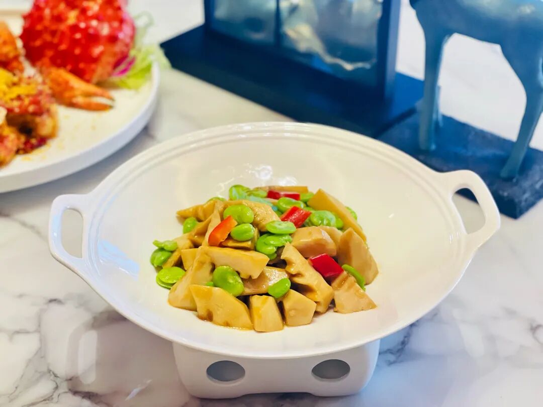 甜甜嫩嫩的春笋,颜色红亮诱人,每根笋都裹着亮晶晶的酱汁,吃一块满口生香,鲜甜脆嫩又爽口,感觉和春天的阳光一样美好~
