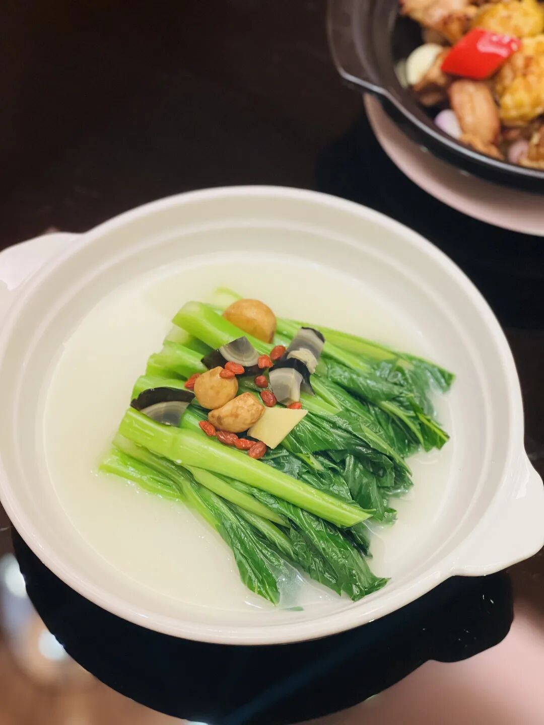 如同翡翠的绿色便可看出它的新鲜程度,看似简单却又考验着大厨的技艺,又不能有太大的生味儿,油和酱油的配比也为该菜品增添了香味~