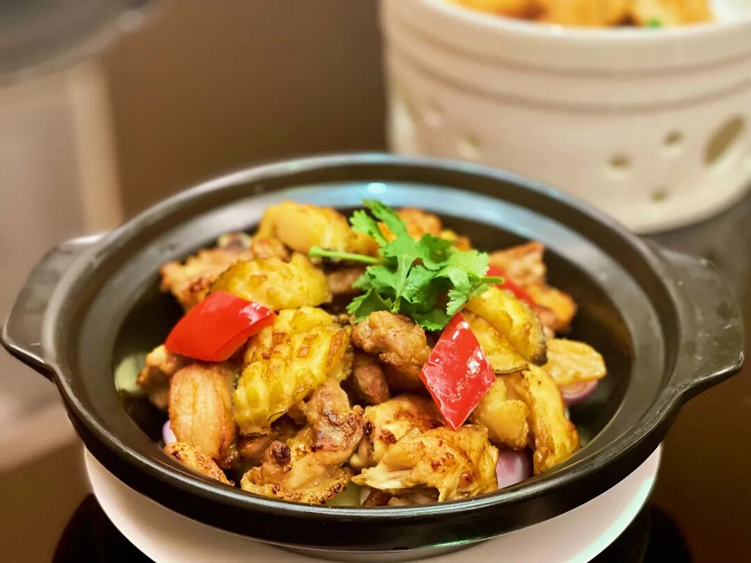 啫啫煲就是将生鲜的食材,直接放进烧热的瓦煲里,瓦煲中的汤汁在高温烧焗时不断快速蒸发。鲍鱼都经过精挑细选的~揭盖后酱汁均匀地粘附在鸡肉和鲍鱼上,焦香味十足,口感鲜嫩。通通都是用煲仔原煲煮熟上,不用炒锅,原汁原味马上开吃!