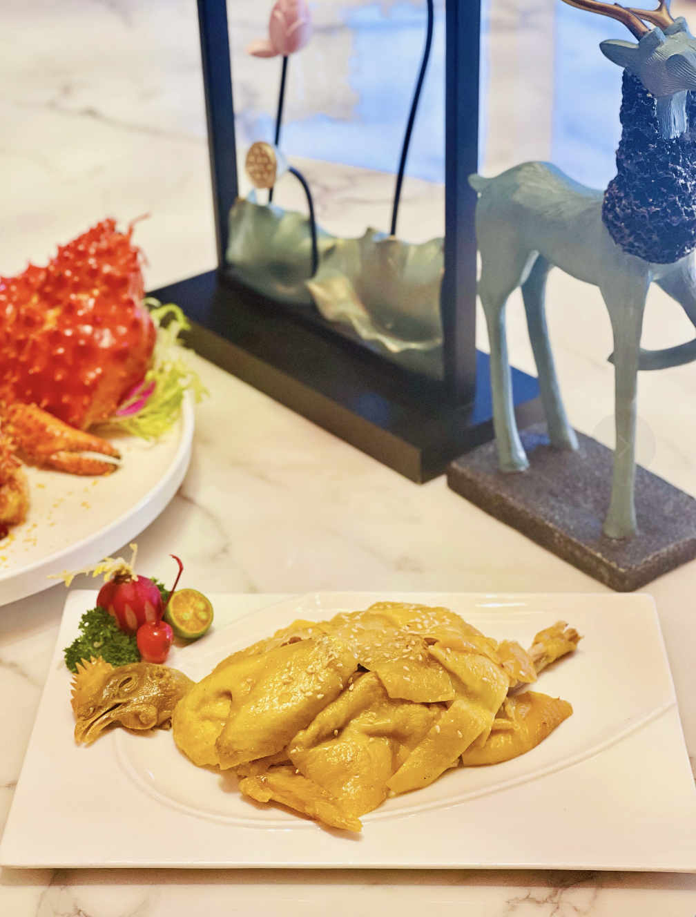 用粗盐古法现焗走地鸡!鸡皮金黄甘香,鸡肉爽滑入味,味道可不是盐焗鸡粉能比的!掀起薄如纸的鸡皮,底下全是肉,淋上秘制酱料,味道只有两个字可以形容:真香!