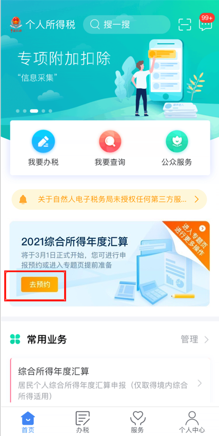 提交成功后,您会看到“您已成功预约”页面,这样您就可以在所选日期的当日申报2021综合所得年度汇算。
