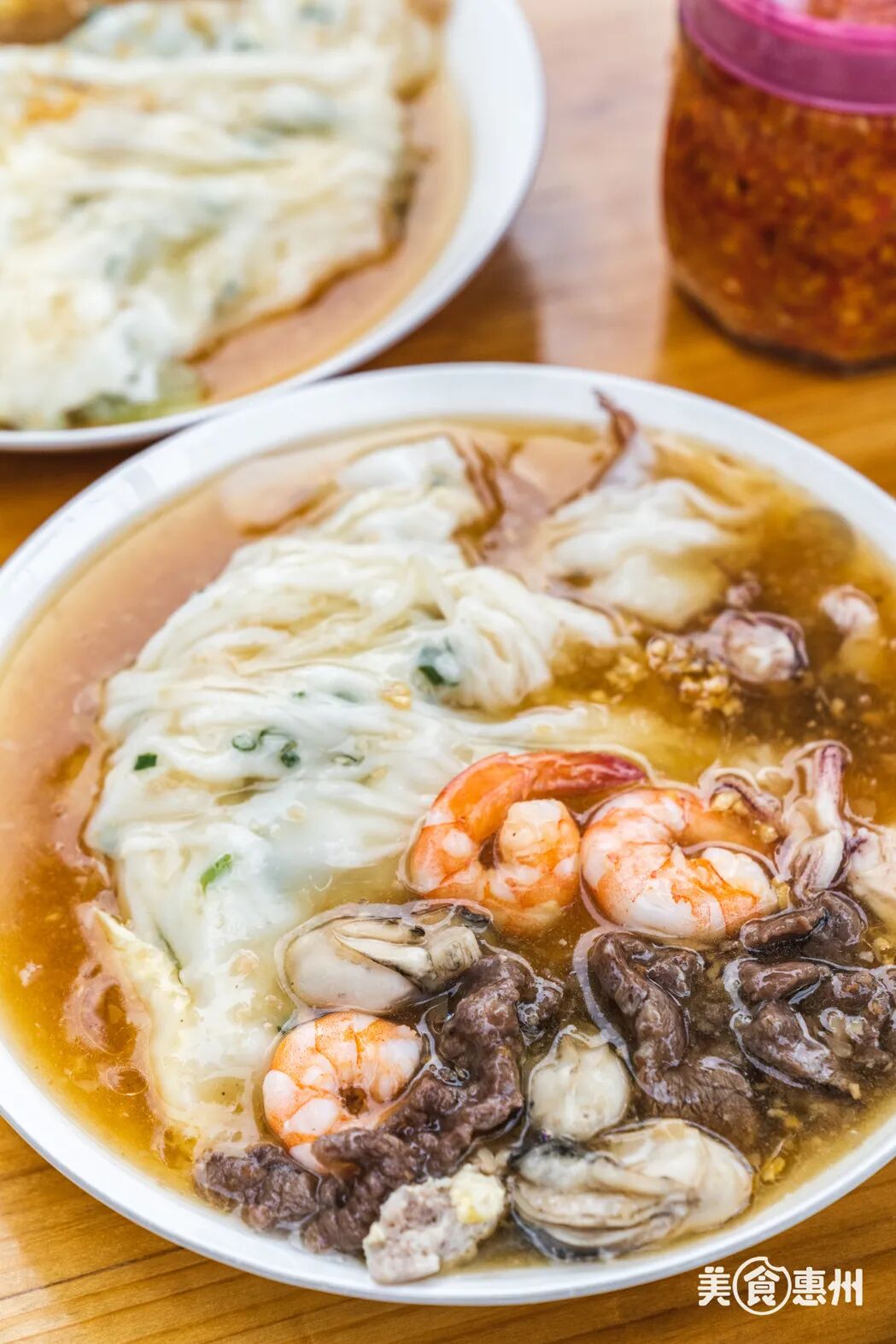 许多潮汕人到店更多的是会点上一份炒粿。15元-30元不等的炒粿分量很足,刚上桌那会,热气腾腾,还没开始吃就得到了治愈。