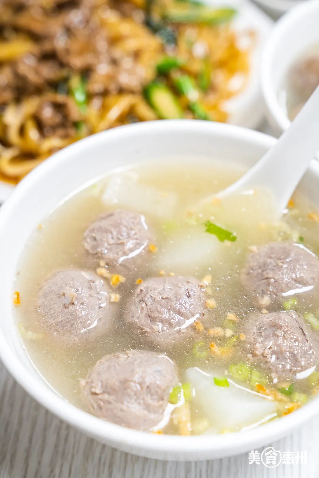 每次来洪旺都会必点一份牛丸汤。10元就能吃到一碗牛丸汤,在这个物欲横流的时代,这个价位能喝到这样一碗暖胃的汤,实属不易。牛丸汤里加入了经典的潮汕汤配菜——炸蒜粒、芹菜粒,加上萝卜的提味,使得这碗牛丸汤很是鲜甜。