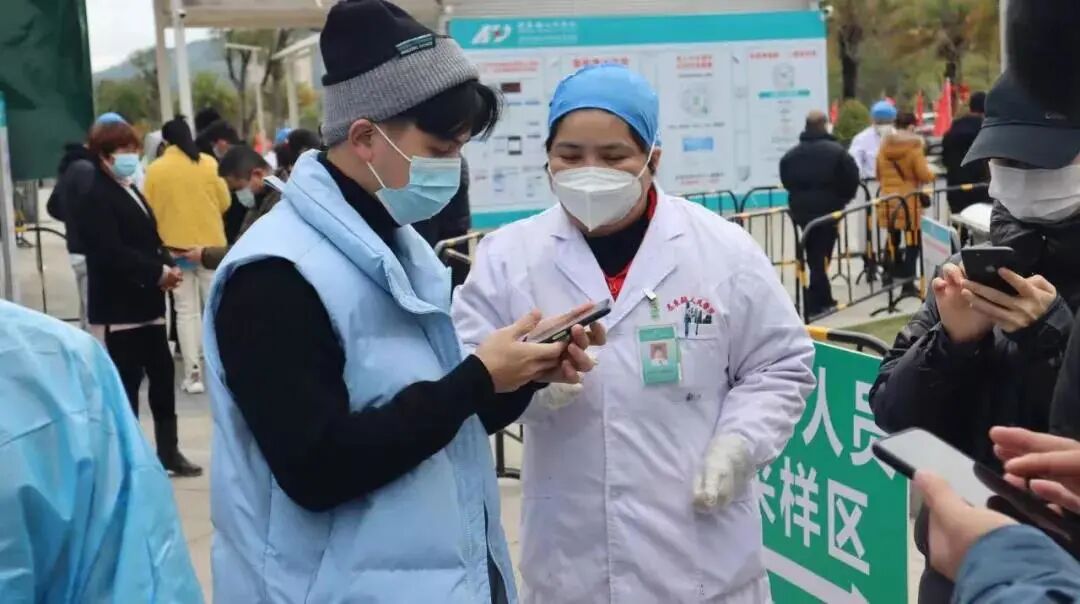 在疫情防控检测核酸时,不缺有这样的身影,不断在核酸检测队伍中穿梭,提醒村民佩戴好口罩、保持一米间隔,并帮助群众扫码、验码、核对身份等工作的志愿者们。