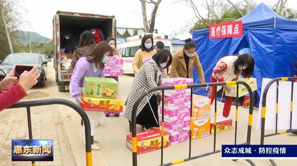同时,惠东县女企业家协会党支部前往封控区、管控区、防范区开展“战疫同心,巾帼有爱”慰问活动,捐赠了一批护目屏、医用口罩、体温枪、面包、方便面等防疫物资和生活物资给防控区一线防疫人员。