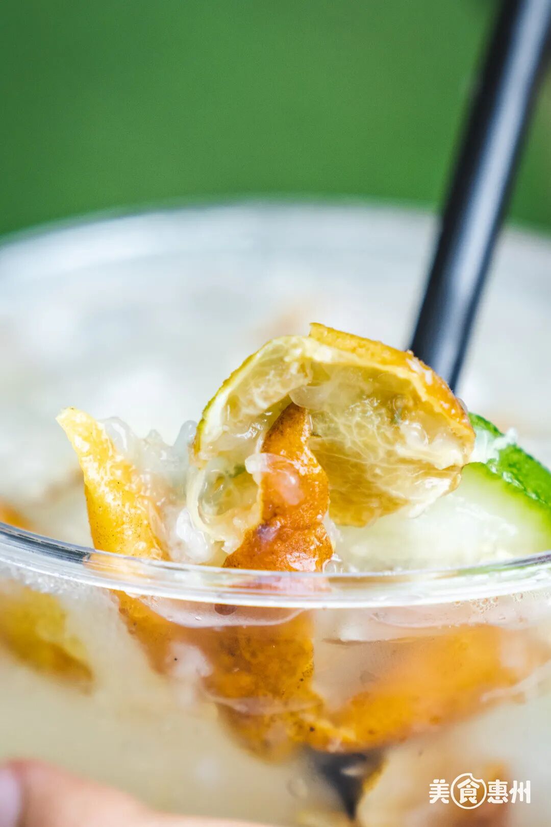 作为季节限定的它,走不同寻常路,黄皮加柠檬带给人满心的好奇感,清晰可见的黄皮果肉和柠檬混在一起。