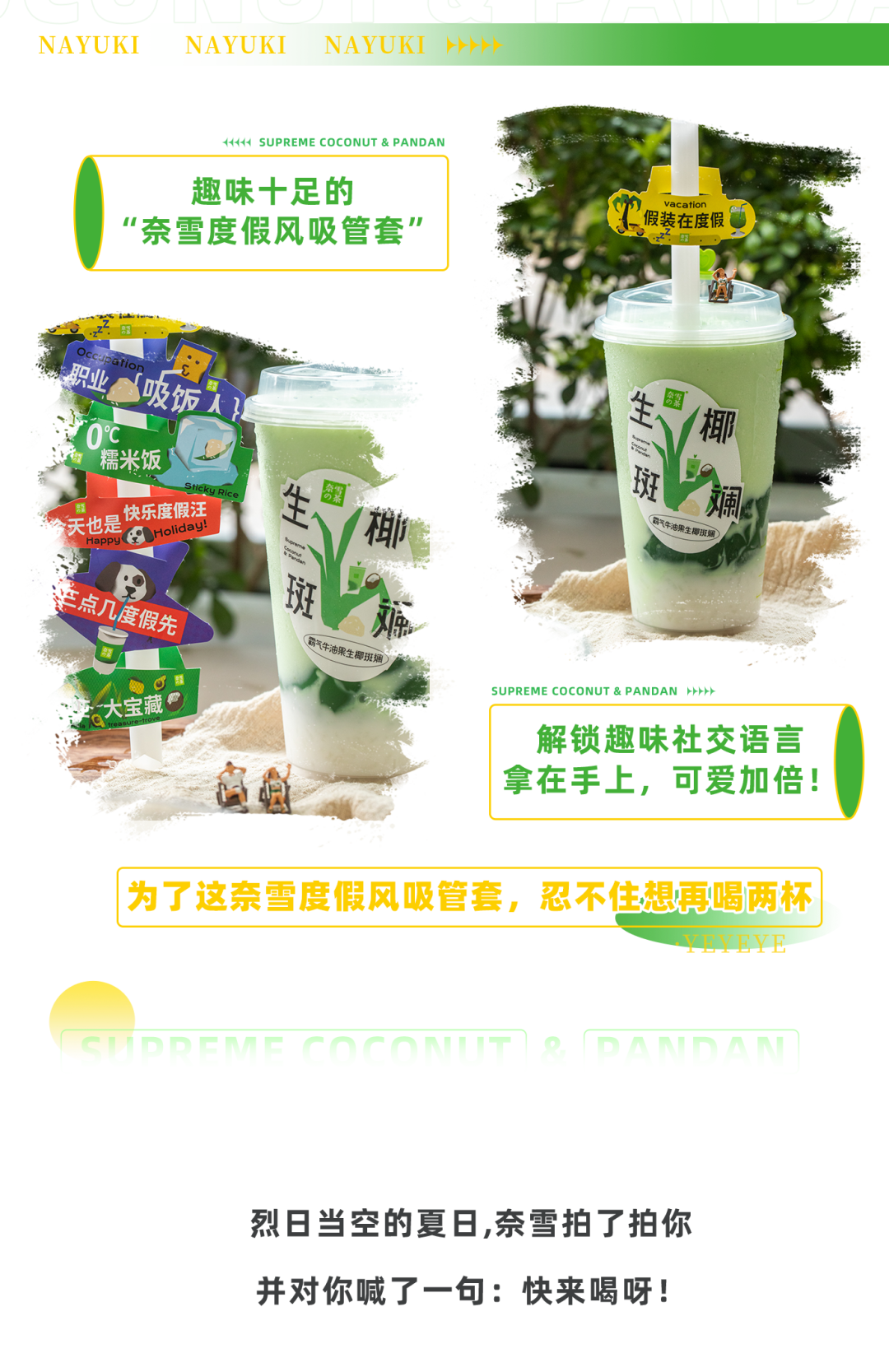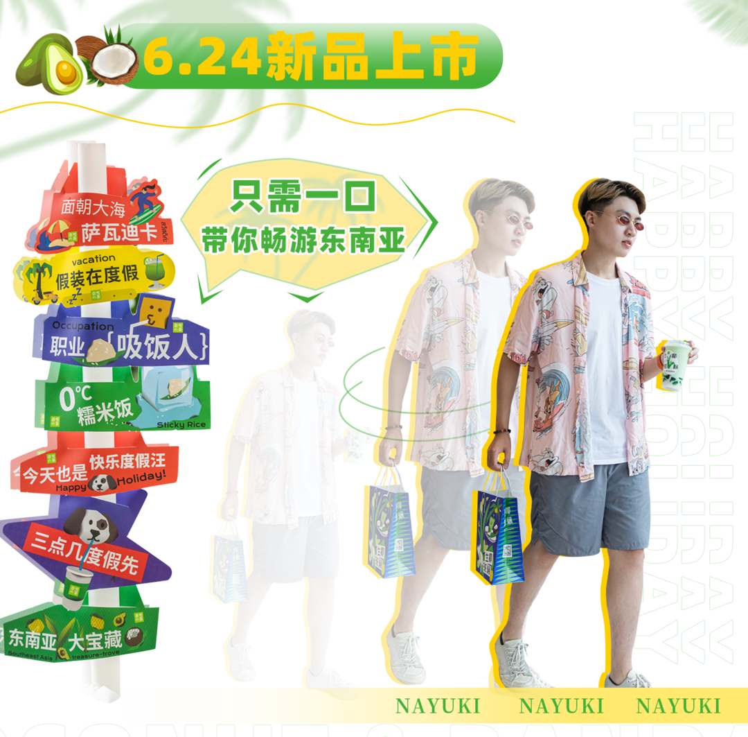 满屏的清新绿引发视觉极度舒适,奇妙的夏日搭配,一拍即合,快来奈雪与东南亚味的夏季碰杯吧!