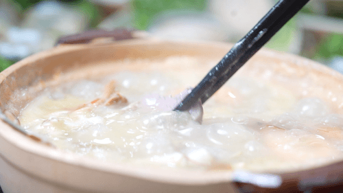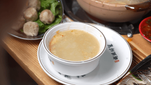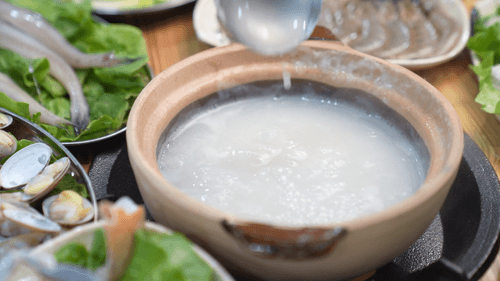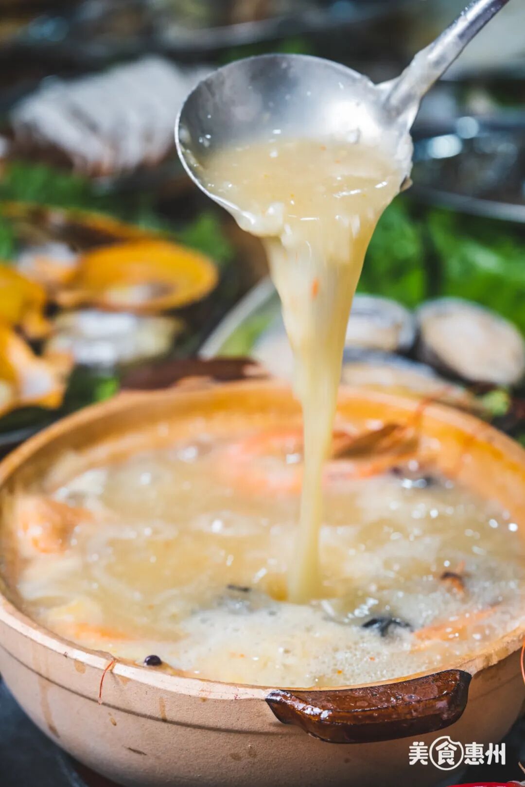 最后,别忘了舀上满满一碗热粥,涮完菜后的粥底,浓缩了所有海鲜的精华,压轴喝最鲜甜!