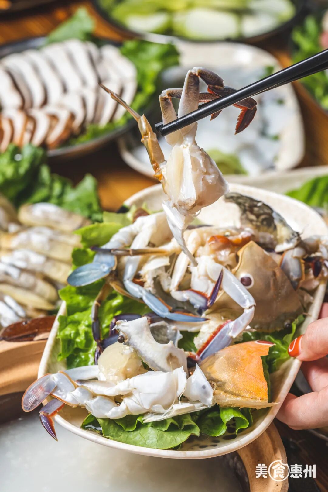 鲍鱼、三点蟹、白贝、基围虾…个个鲜活劲大,除了海鲜,还有几十种涮肉涮菜,现点现涮,想吃什么只管拿!