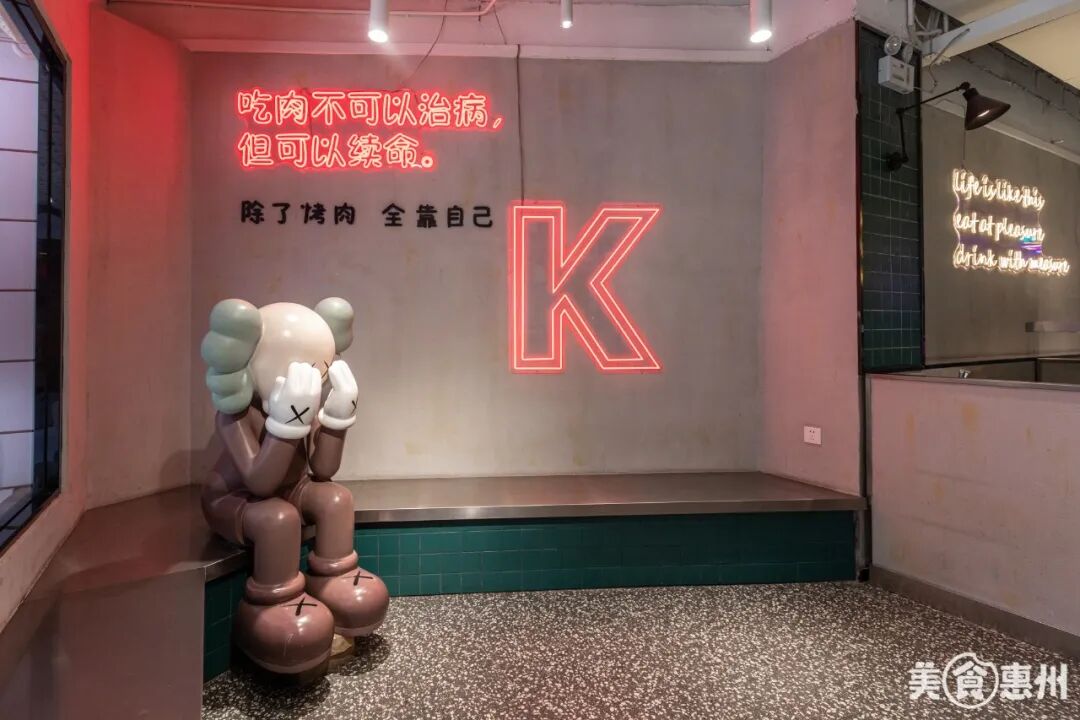 粗犷的工业风布置,一点都不会让人觉得拘束!大面积的霓虹灯装饰和墙面标语,藏着浪漫小心思,进门瞬觉心旷神怡,完全没有普通烤肉店那种烟熏火燎。