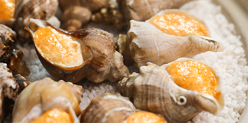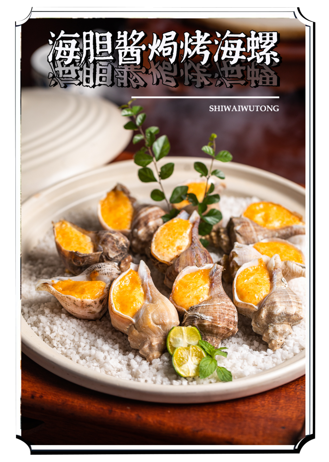 半个手掌大的海螺,铺满了金黄澄亮的海胆酱,用竹签轻轻一挑,一块完整的大螺肉就这样呈现在眼前,伴随着海胆酱一同入口,肉厚酱鲜,充满韧劲,实在满足!