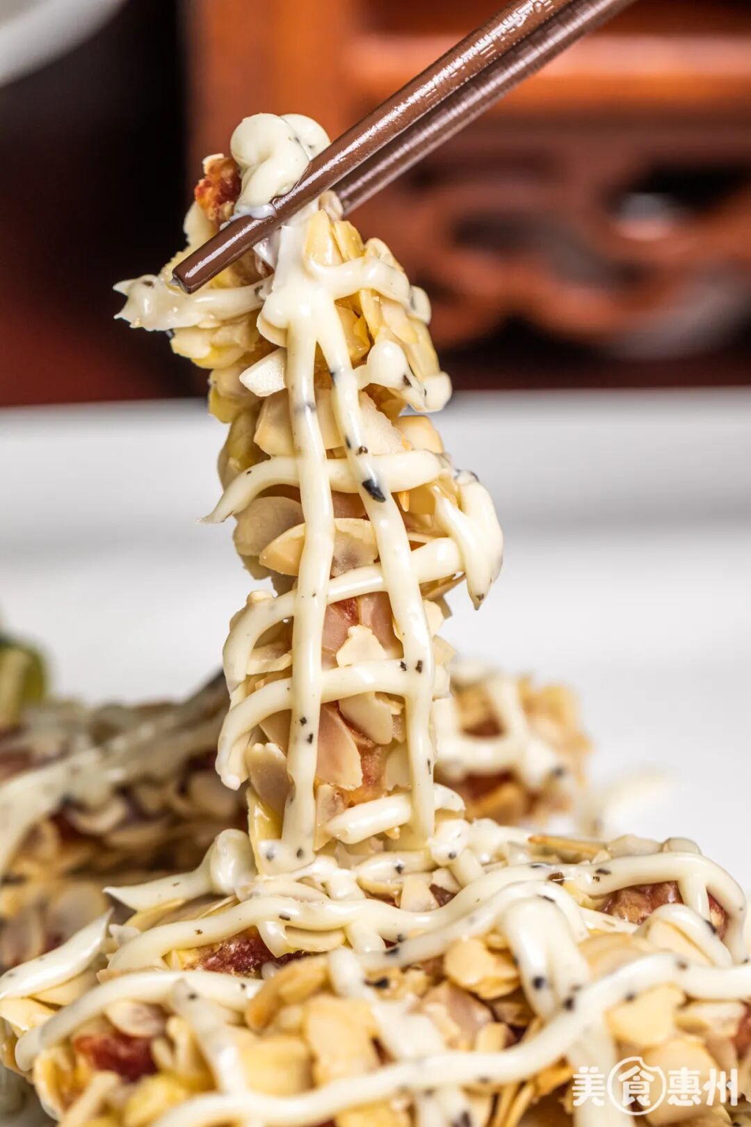 铺得满满的杏仁片下藏着的大块牛柳,用料一点都不含糊,沙拉酱才是这道菜的点睛之笔,咸甜搭配意外的对味,让人一吃就停不下来。