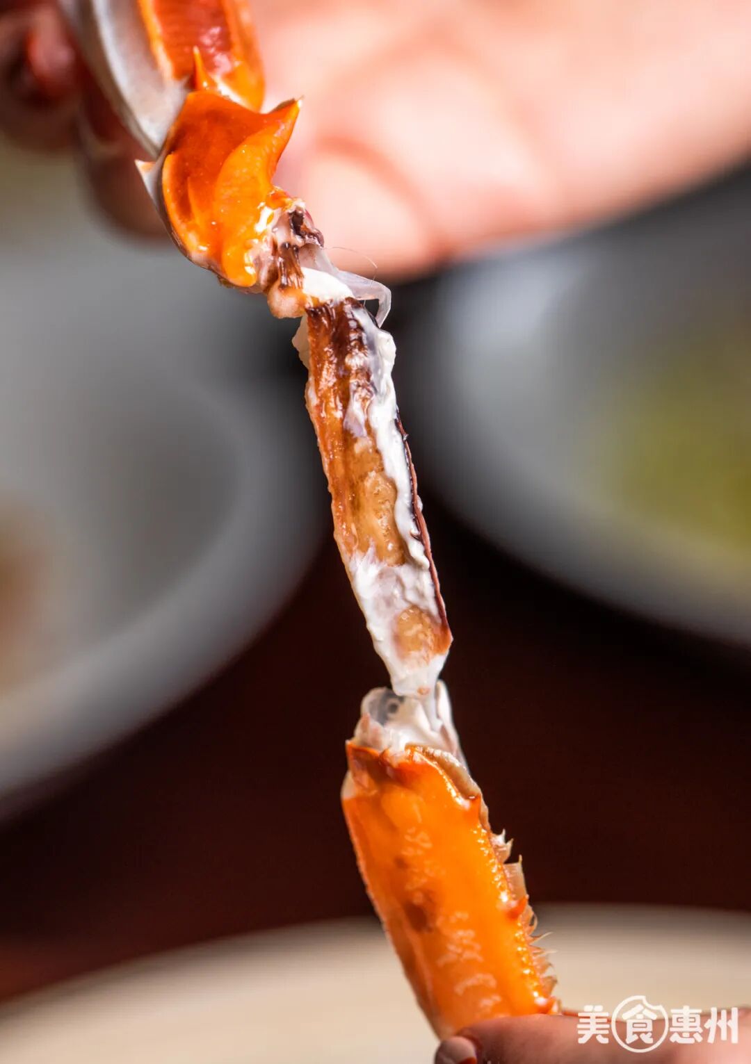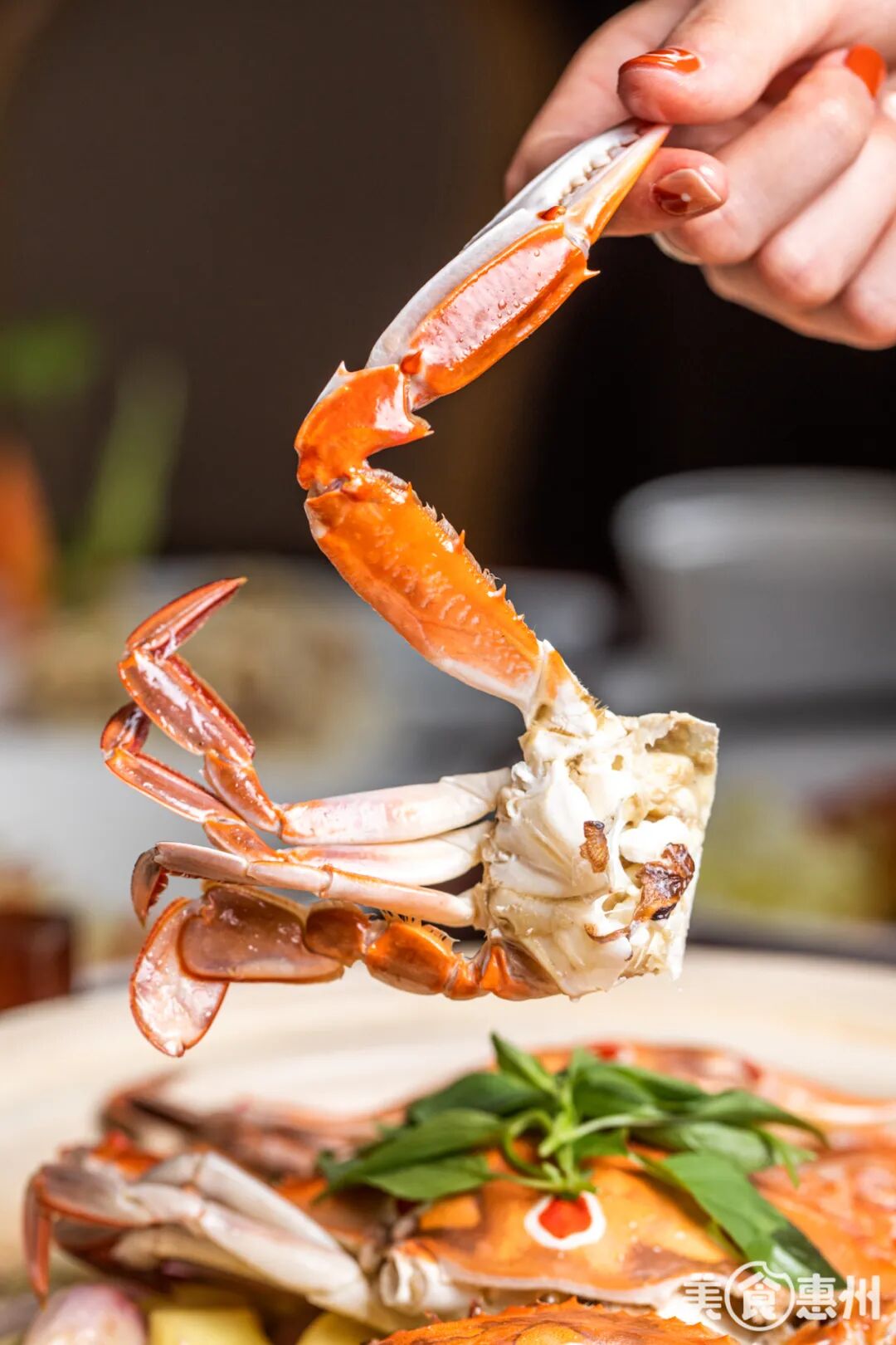 上桌后最抢手的便是蟹肉了,轻轻一掰,紧实饱满的蟹肉就这样轻松扯下,鲜甜肉滑的钳肉越嚼越得劲,原汁原味中还带着淡淡的香草清香,吃起来别提多鲜了。