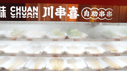 跟很多串串店不同,川串喜还增设了油炸区。将选好的串串拿到油炸区让师傅进行加工,几分钟后就能吃到色香味俱全的油炸串串了,幸福感大大提升。