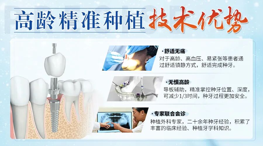 对于高龄、高血压、易紧张等患者通过舒适镇静方式,舒适完成种牙。