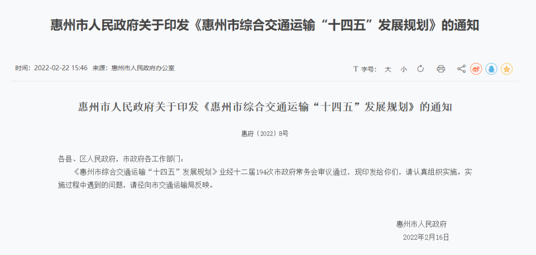 (温馨提示:点击“阅读原文”查看《惠州市综合交通运输“十四五”发展规划》全文)