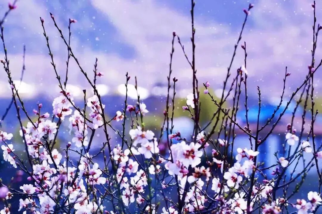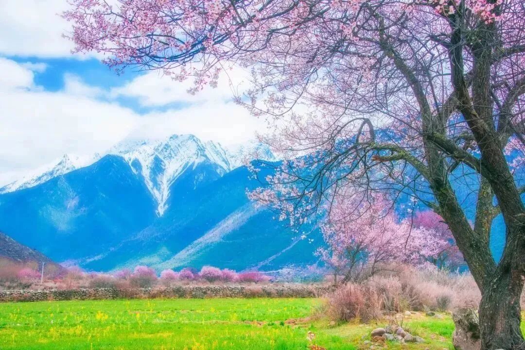 3月的林芝,春寒渐消,远方的雪峰还有皑皑白雪,桃花已如落霞般悄然绽放。
