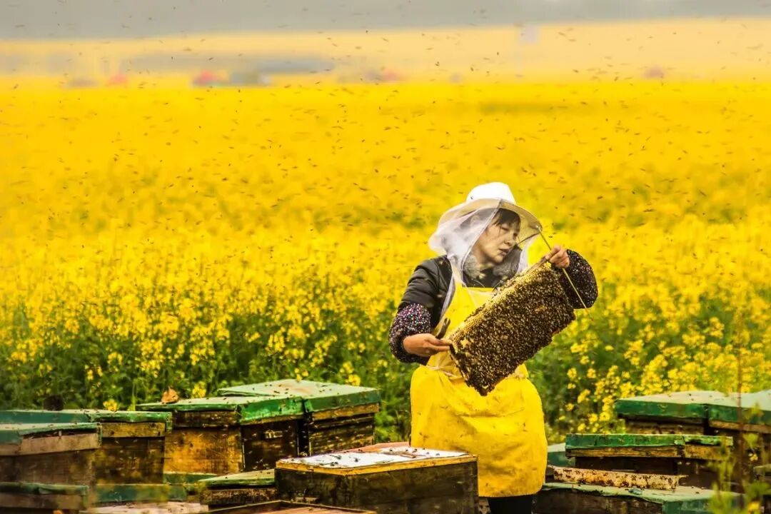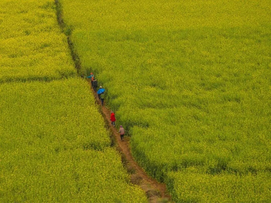 春日里,金黄的油菜花田铺满了所有土地,一直绵延到山的那头,就像一块上好的金丝毯,点缀着这个古朴的村庄。