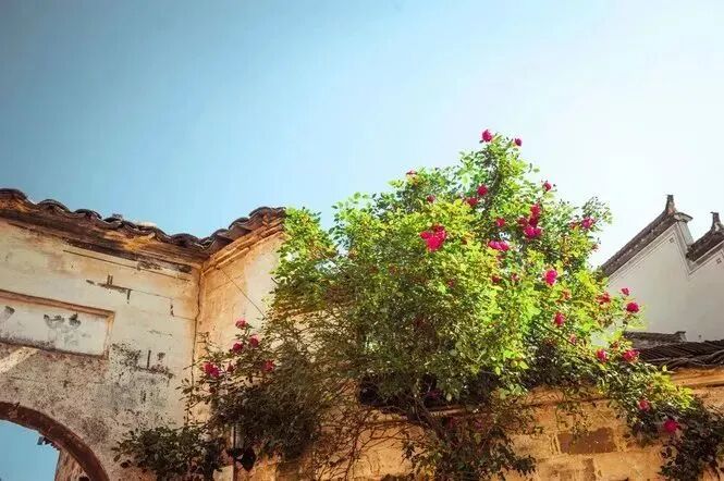 树木新抽出的细嫩的新芽,含苞待放的花,把宏村的青砖黛瓦映衬的更加诗意,宛如一幅不可多得的山水画。