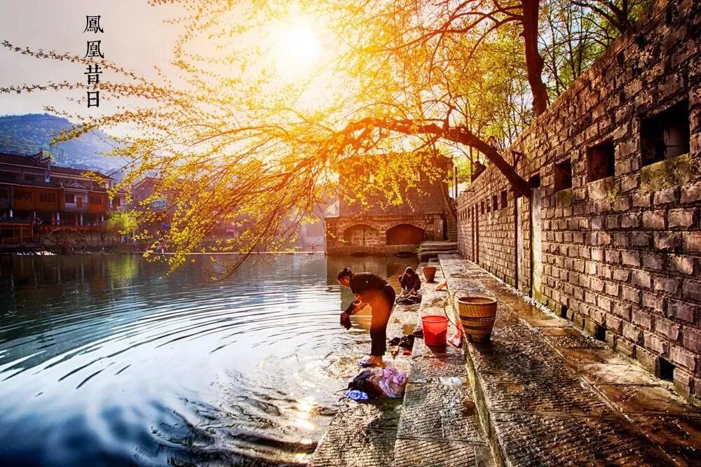 凤凰古城依山傍水,沱江穿城而过,红色砂岩砌成的城墙伫立在岸边,南华山衬着清朝年间的城楼。