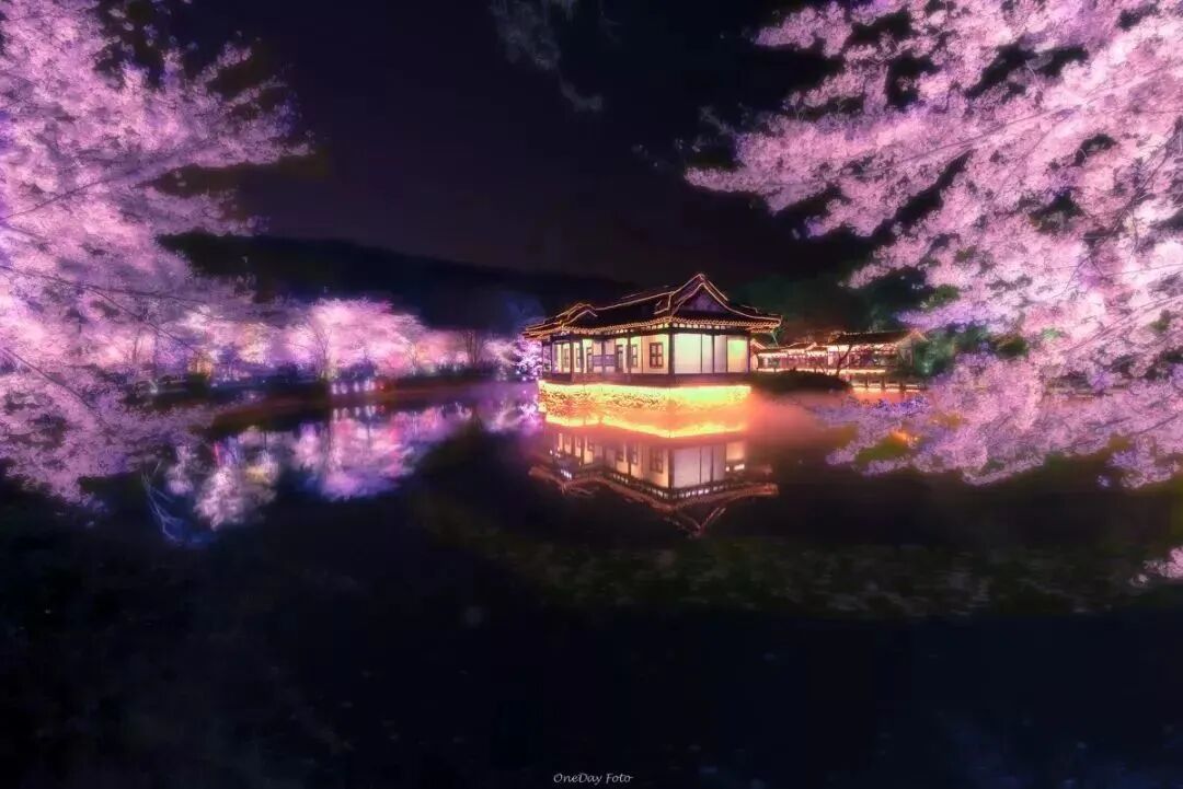 3万株樱花在这里悄然开发,空中飘散着的是粉色的花雨,弥漫着的是樱花动人的香气,梦幻的好像不在人间。