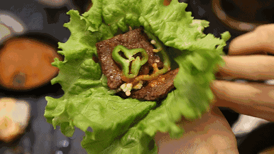 新鲜采摘的生菜,还沾着滴滴水煮,与烤肉一同享用缓解油腻,入口皆是清新感,清爽入味!