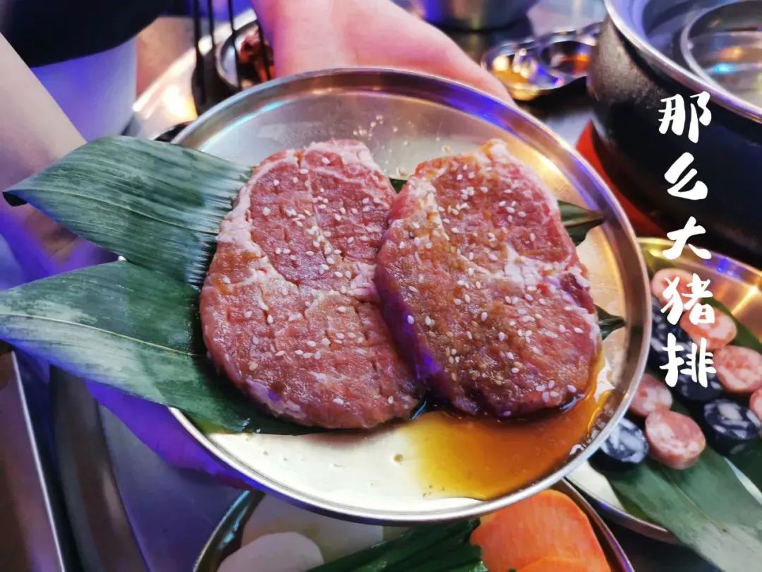 肉肉中的颜值担当,那么大猪排真的好大一块,肌肉的鲜红与脂肪的雪白交相呼应。稍稍烤制,便有丰沛的肉汁流出。