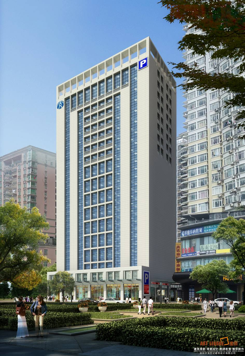滨江公园智慧停车场,地下1层,地上18层机械式立体停车场,停车位500个。
