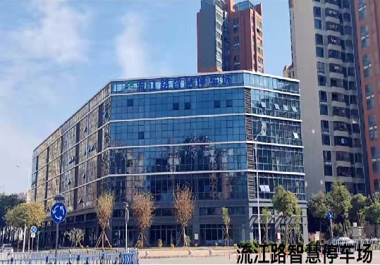 流江路智慧停车场,地下1层及地上8层机械式立体停车场,停车位400个。