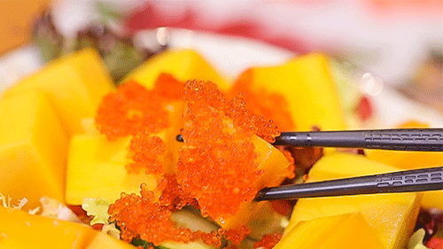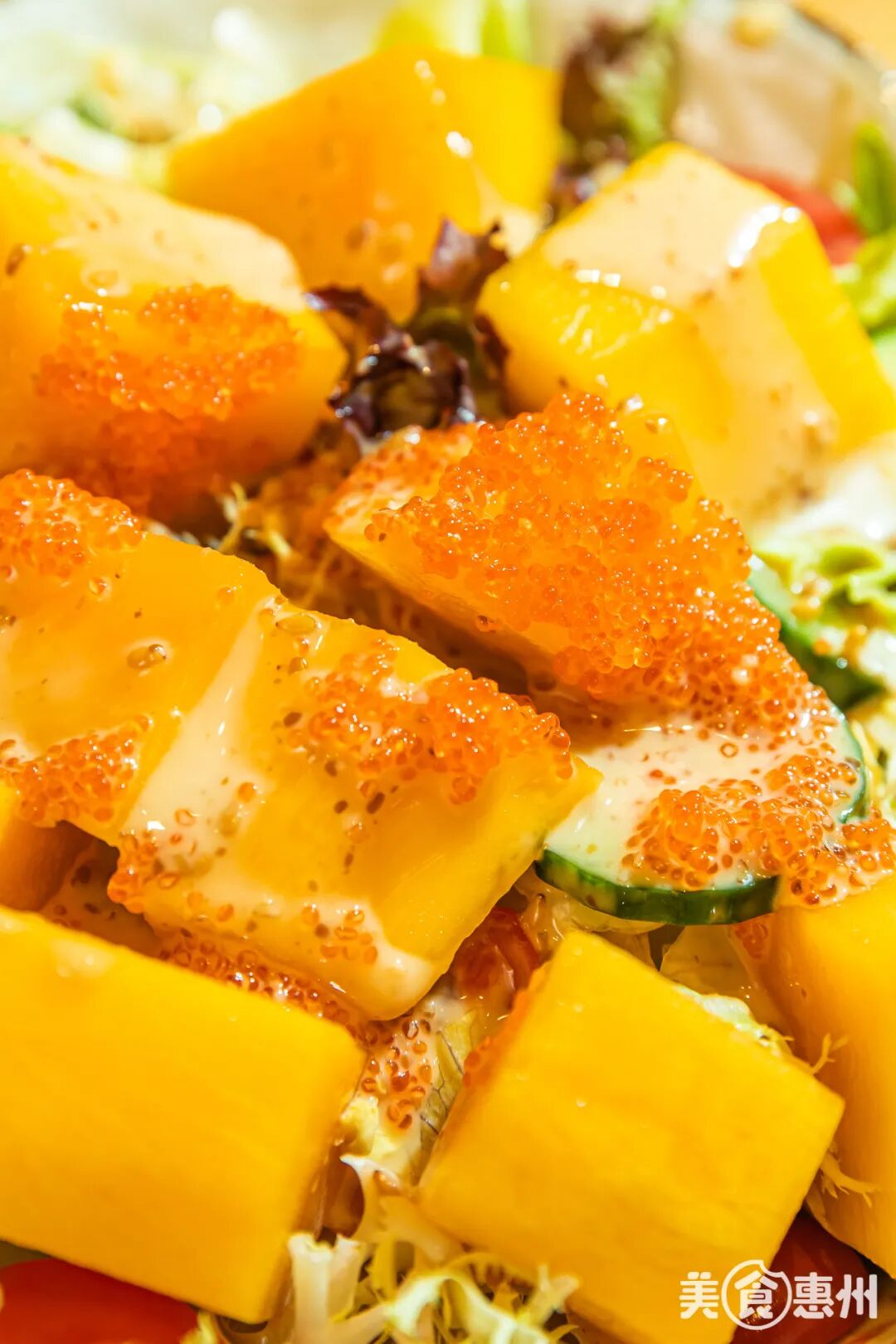 新鲜的蔬菜、口感十足的蟹籽、切成大块的芒果,甜得沁人心脾。
