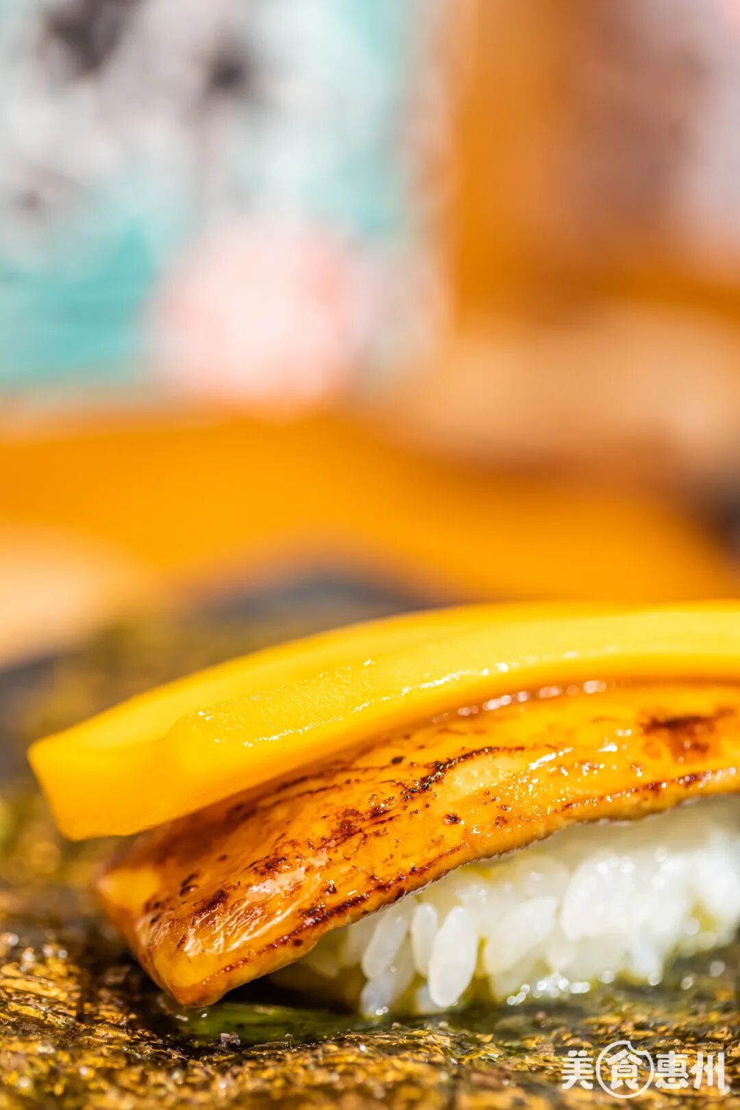 这道香芒鹅肝寿司,鹅肝的厚度十分感人,必须趁热送入口中。