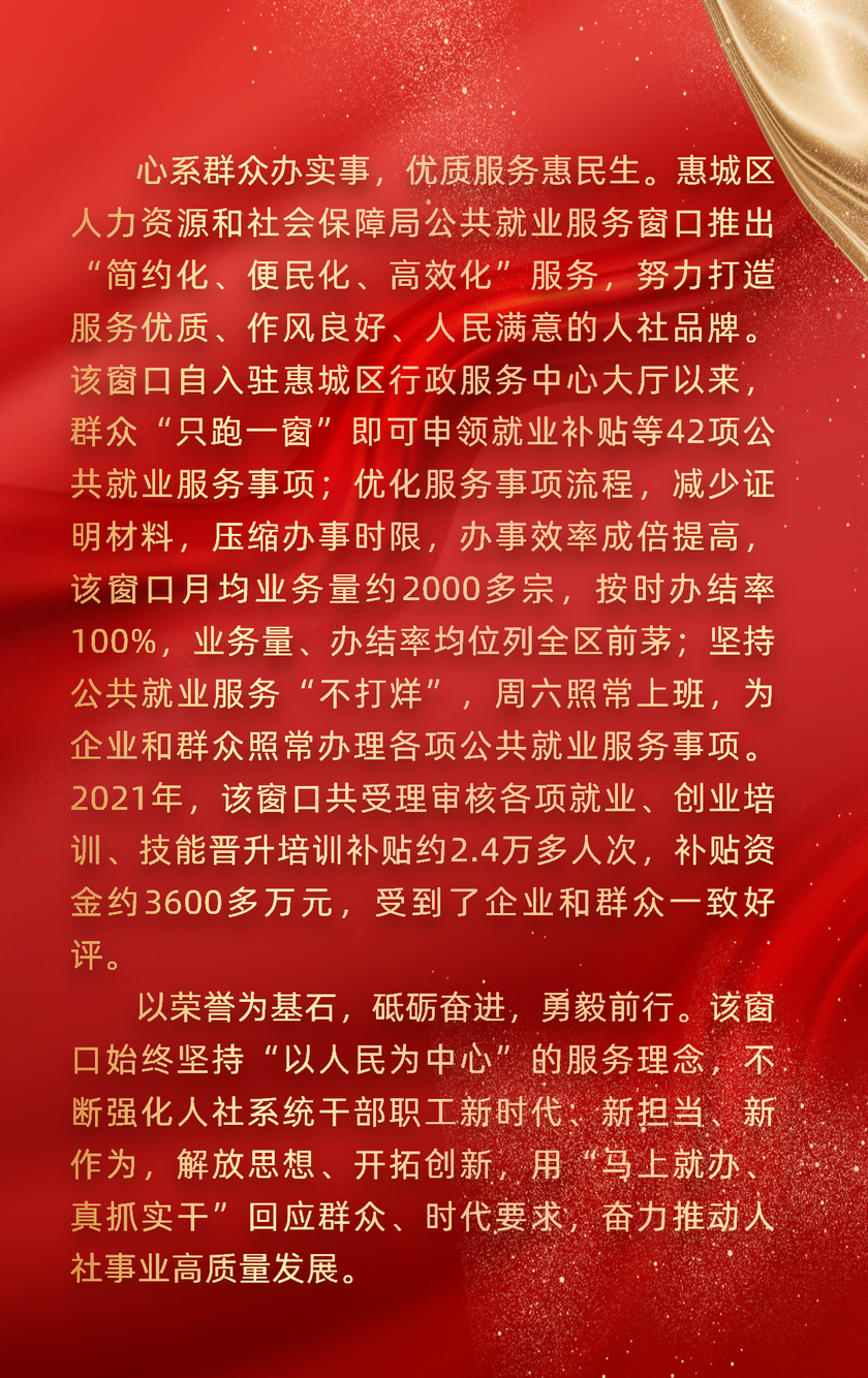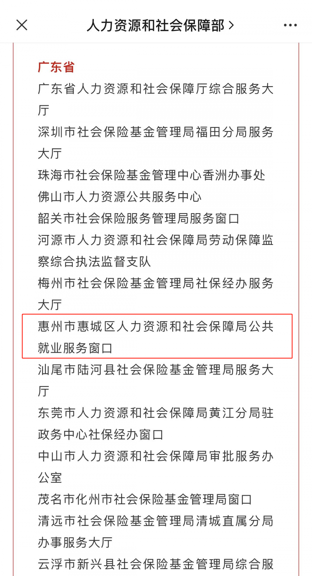 惠城区人力资源和社会保障局公共就业服务窗口提供业务事项如下: