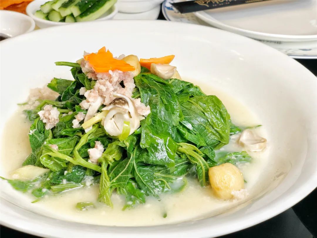 上汤桑叶,细腻鲜香,绵润可口。入口是桑叶的香味,紧接着是汤汁浓郁的清香,口感层次丰富,绵密鲜香,分分钟被秒光的节奏呀~