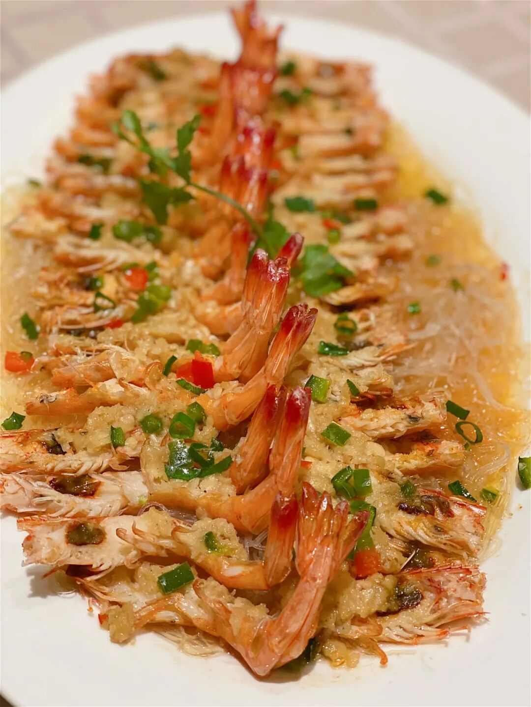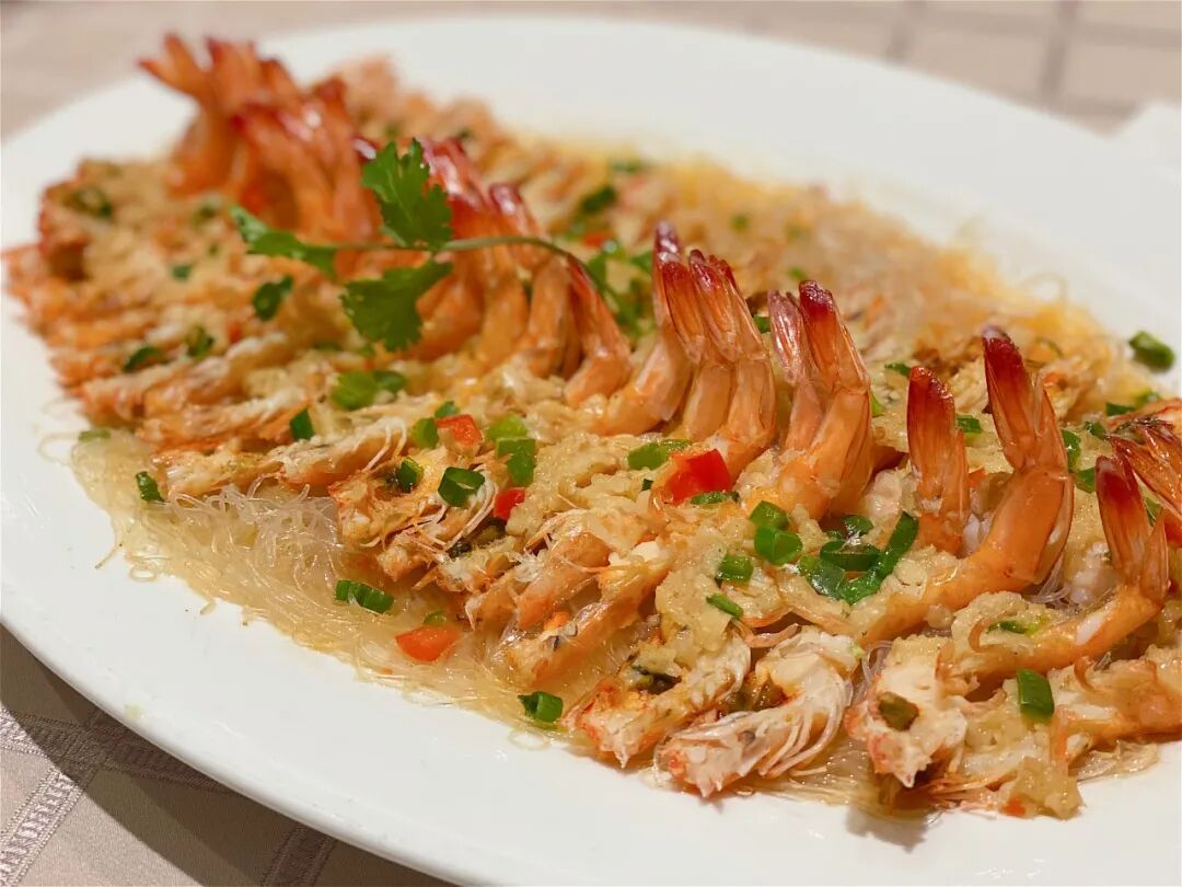 虾肉质饱满,鲜嫩Q弹,有了蒜蓉、粉丝的buff加持更是鲜甜。