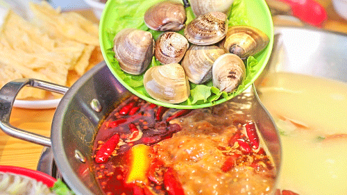 骨汤锅、麻辣锅、鸳鸯锅3种锅底都是吃火锅的标配,点的人最多,还有广东特色粥底锅,食材混合粥底,也是口口鲜香!