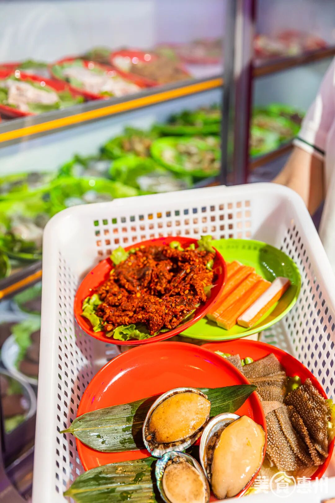 还有爽脆毛肚、新鲜鸭肠、各式贝类、鱼类、生蚝、时蔬…等100+款菜品,品类丰富到让人挑花了眼,款款新鲜,均价只要5-13元!