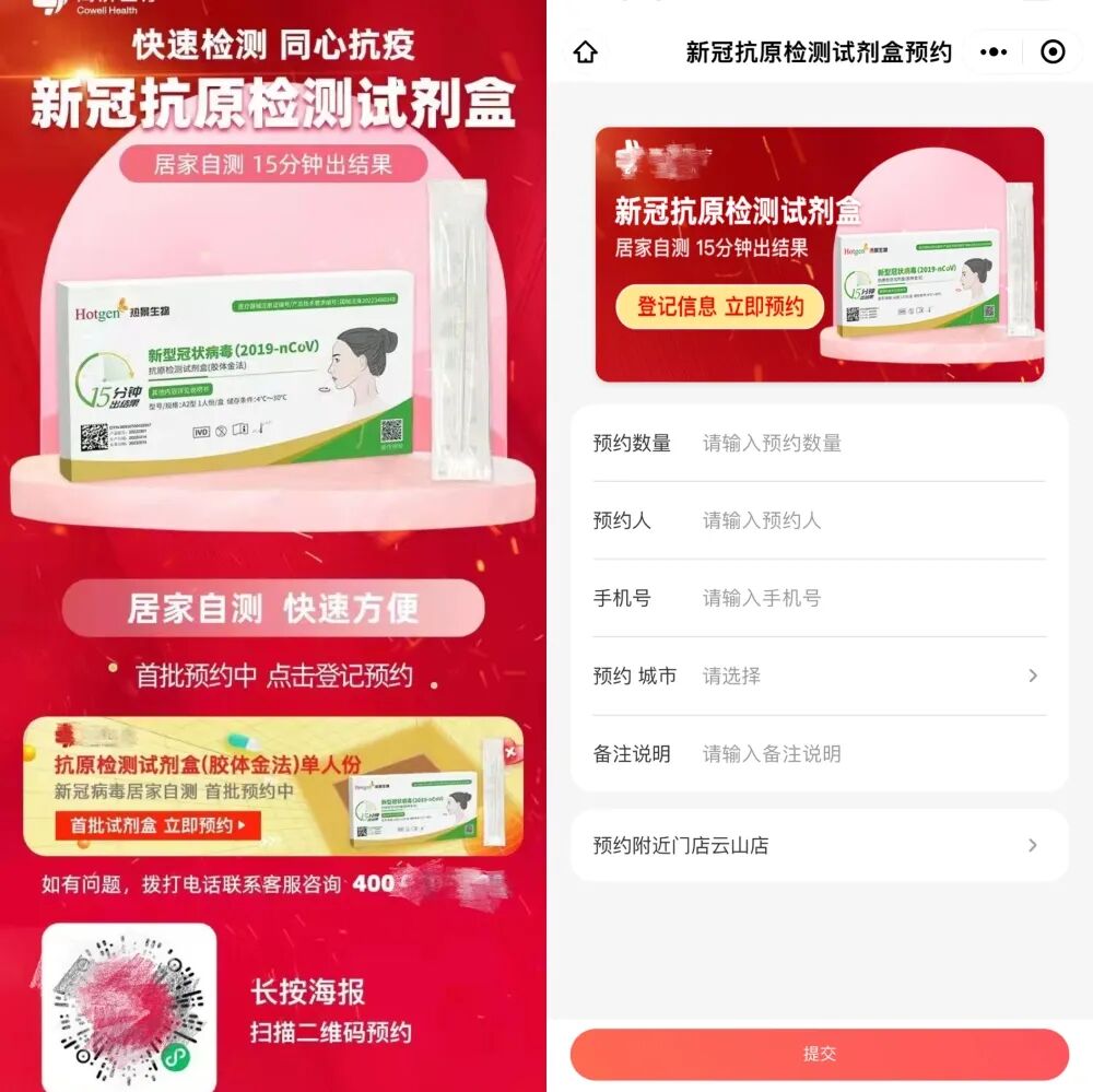 目前,抗原检测试剂在惠州市面上暂时还没有现货销售,但在一些网购平台上,部分检测产品已接受预订。记者登录某健康平台小程序发现,有一款名为热景生物的抗原检测试剂盒可接受预约登记,但没有显示具体销售时间。