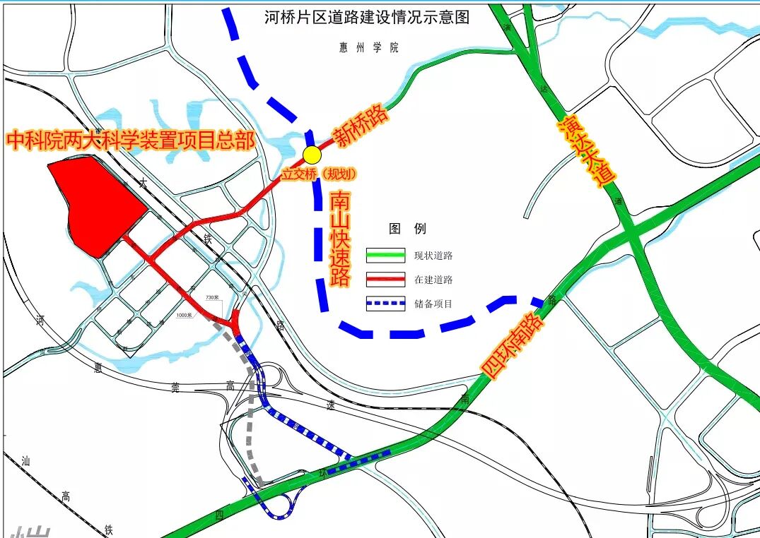 根据金山新城的规划,惠城南四环沿线科教片区被规划为文教智创区,目前已有中科院两大科学装置项目总部区及惠州城投项目进驻。随着区域不断发展,对于便捷的交通条件提出了新的要求。