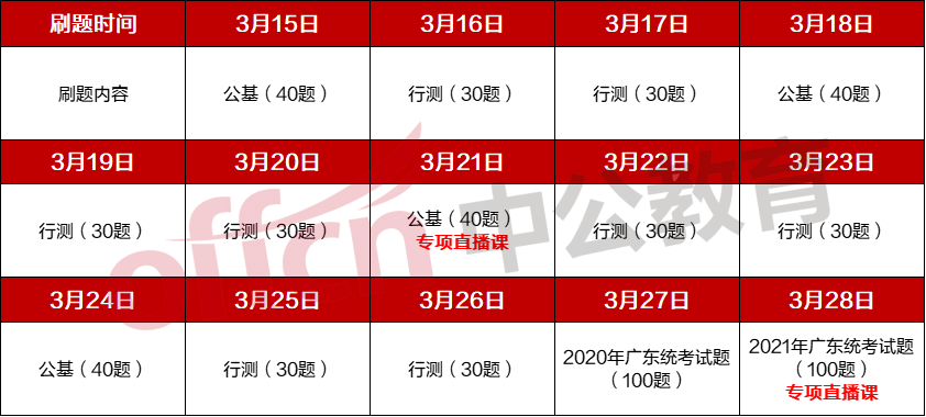 每天30-40道公基、行测各模块题目,巩固知识点,提高做题效率,并新设2天真题刷题时间,200道往年试题检验成果,利用起碎片式时间加强学习。