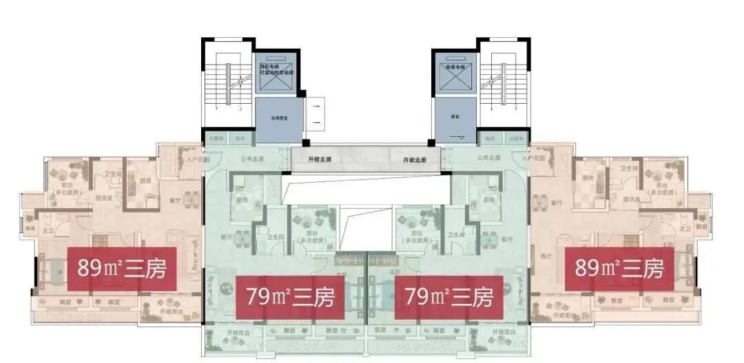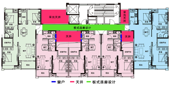 现在大部分高层有了消防连廊之后,中间户也是可以实现南北通透的,居住舒适度同样很高。但是,消防连廊带来通风的同时,也降低了中间户的隐私性,站在连廊上可以看见中间户的某个房间或者厨房。