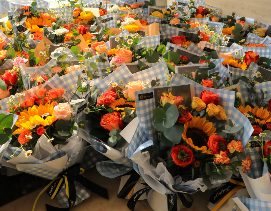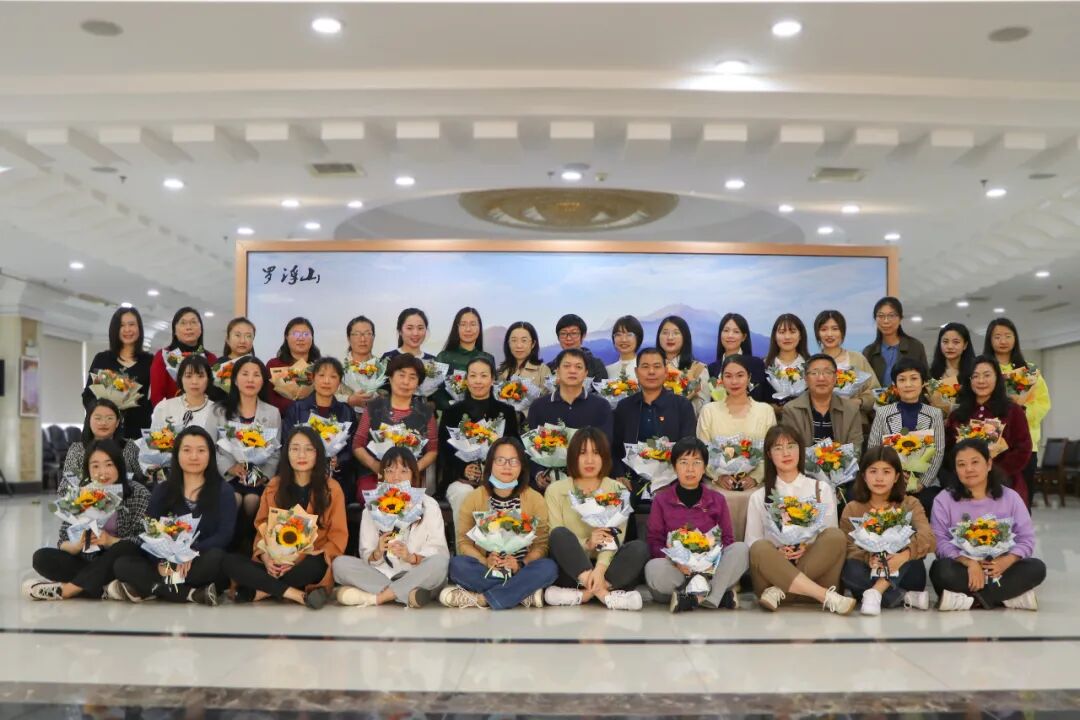 会后,贵平局长亲手为在场女性职工送上鲜花,并与所有参会妇女代表手捧花束合影留念。