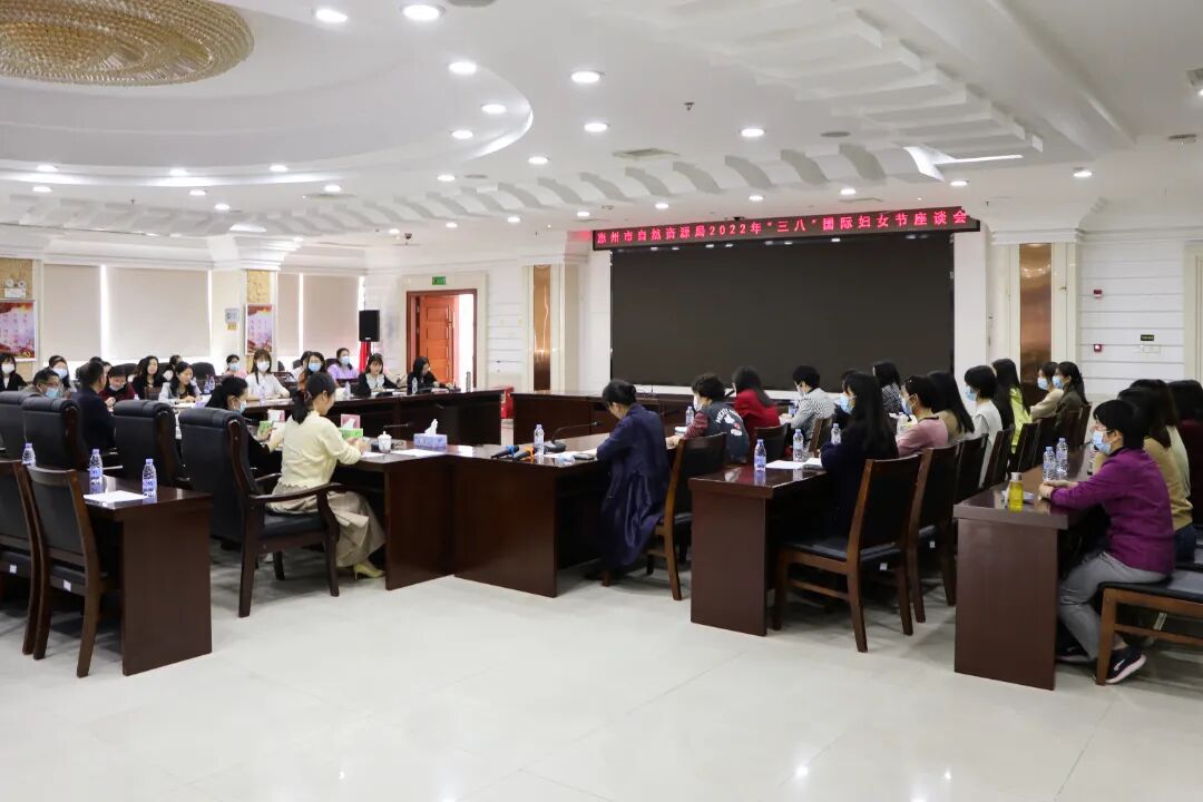 3月4日,惠州市自然资源局在局附四楼召开2022年“三八”国际妇女节代表座谈会,局党组书记、局长袁贵平,局党组成员、副局长陈富强,三级调研员、工会主席刘洪武以及局妇女干部、职工代表应邀参加。