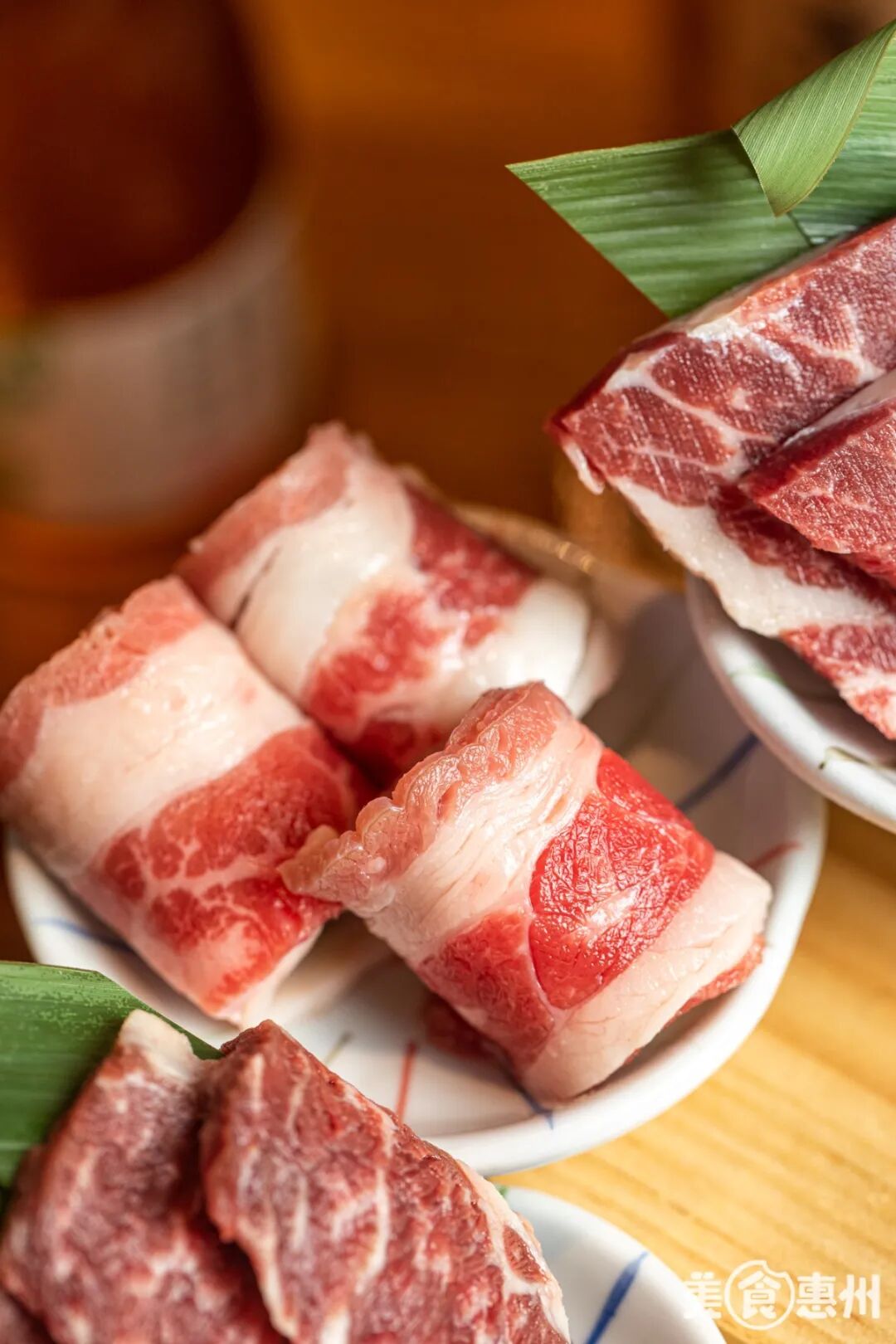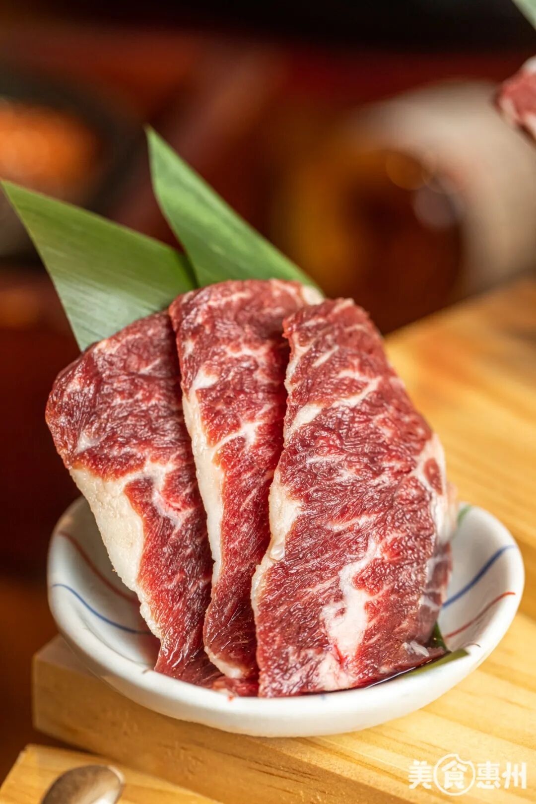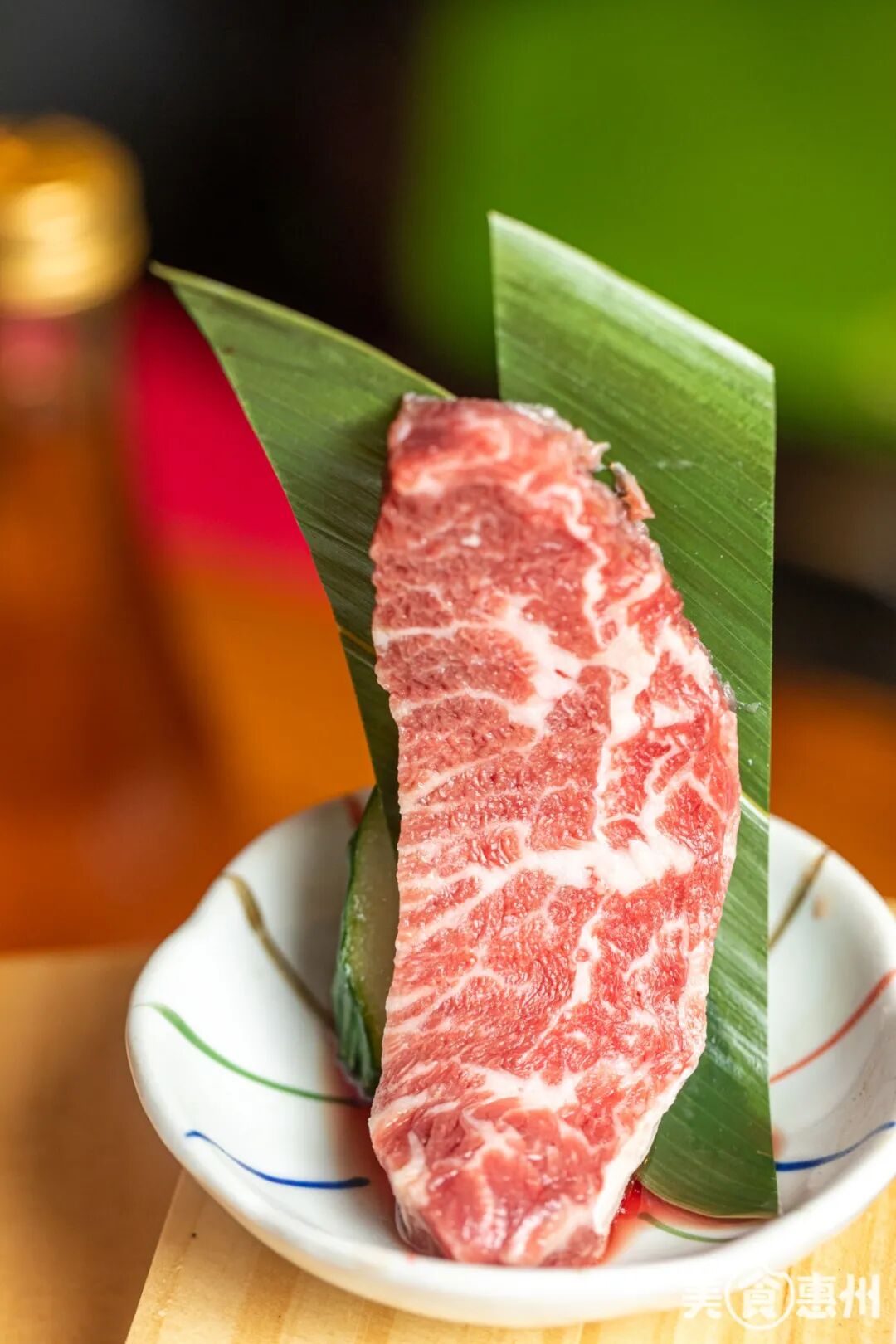 拼盘里最长的肉肉非它莫属!三角雪花牛肉脂肪交杂均匀,蘸上酱料,配上清新的青梅酒简直绝了!
