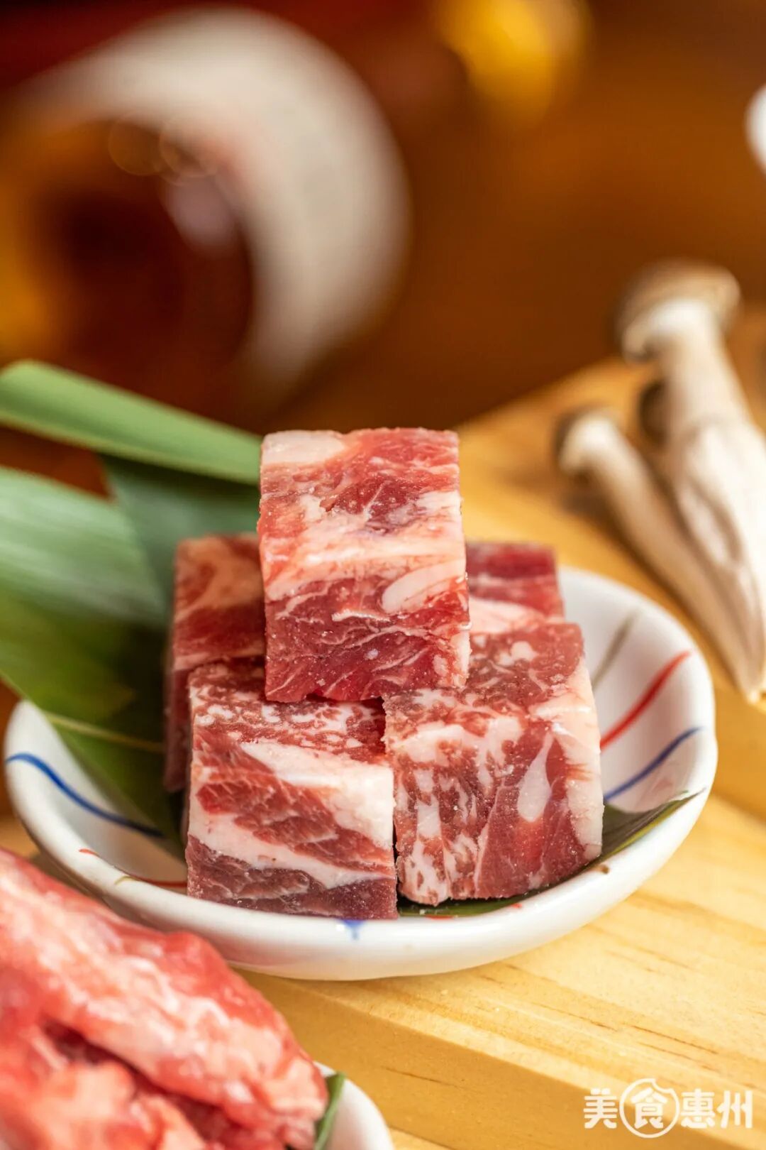 极上雪花牛小排表面明显的大理石纹路简直不要太诱人!多汁耐嚼,肥瘦均匀;即便不蘸酱料,吃起来也很美味。