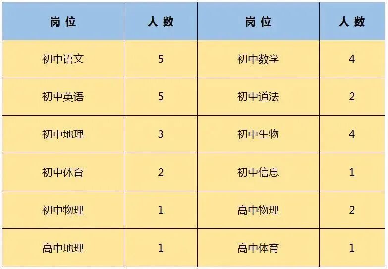 根据学校初、高中发展需要,现面向全国招聘在职教师和优秀应届毕业生31人,被录用者纳入公办学校事业单位人员编制,工资福利待遇由市财政统发。入职时间从2022年8月开始。奥赛优秀教练员、骨干教师、学科领头人、名师、名班主任优先聘用。招聘岗位计划如下: