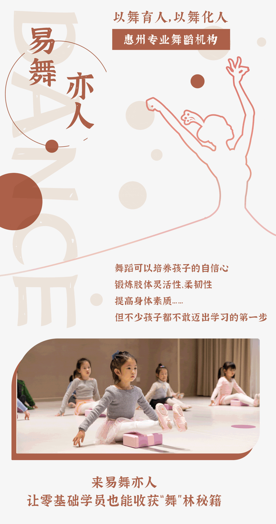 易舞亦人所授内容包括基本功、技术技巧、舞蹈单元课、成品剧目课、舞蹈考级、身体开发训练、以及原创作品编排和艺考指导等等,根据不同年龄和程度为学员给出专业的建议和方案。