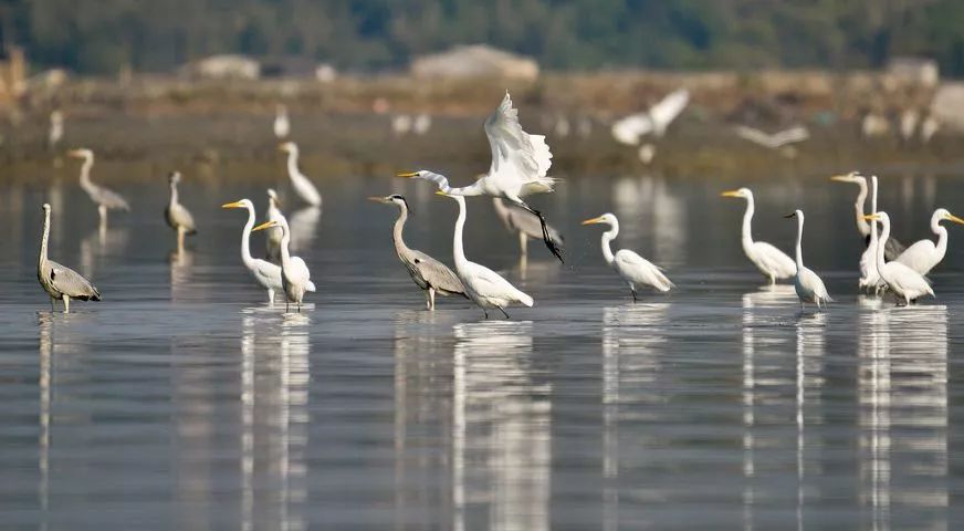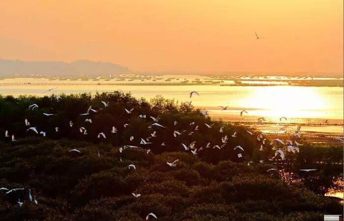 盐洲岛的红树林湿地公园栖息着大量的白鹭
