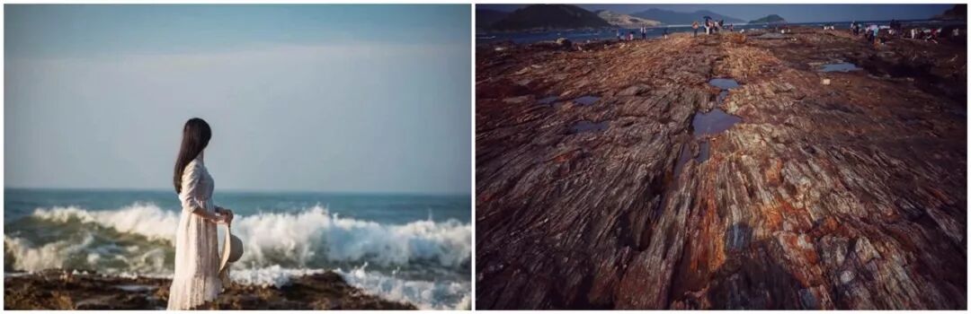 4、13:00前往杨屋村沙滩,这里的岩石经过海浪的常年冲刷,变成暗黑色,也是人们管叫的黑排角。边发发呆、吹吹风,晒晒太阳、观海浪拍岸、光着脚丫踩踩沙滩、拾贝、游泳或乘坐快艇,尽情享受沙滩、阳光、海水、海风带给的快乐。