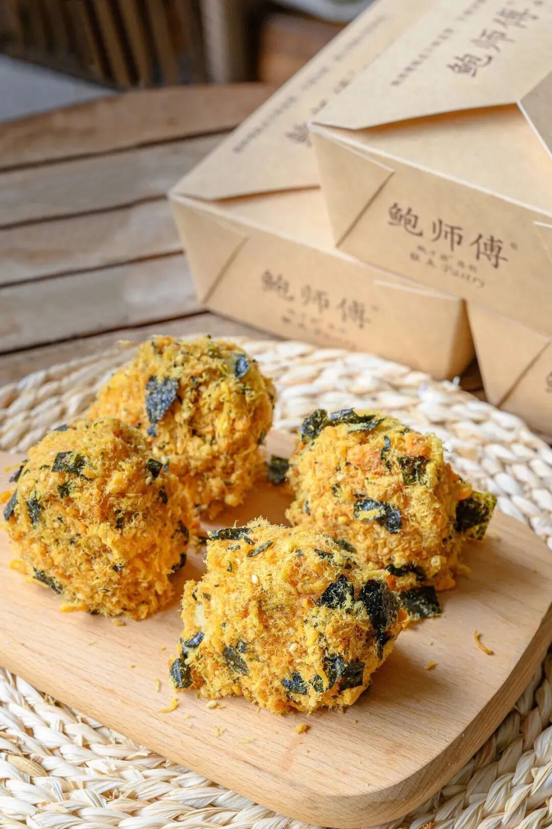 作为鲍师傅的人气招牌,海苔酥松小贝有着无穷的魅力。绵密的蛋糕体、香甜的沙拉酱、香酥的海苔肉松,吃一口就会贪恋它的滋味。